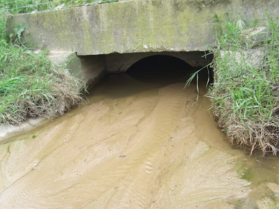 Ou seja muito pouco eficiente, pois com as águas praticamente paradas, e embora já não estejamos em tempo de chuva é certo, mas o caudal para a passagem das águas é muito pequeno ou insuficiente como se pode ver na foto, e a razão é a de que o ribeiro do lado sul deveria de ter sido limpo e não foi, e segundo apurámos junto do proprietário do terreno, seria dada autorização á Câmara para que a limpeza se pudesse processar como devia de ser, e no entanto a Câmara apenas se limitou a fazer a limpeza junto ao aqueduto, ficando por limpar o ribeiro.